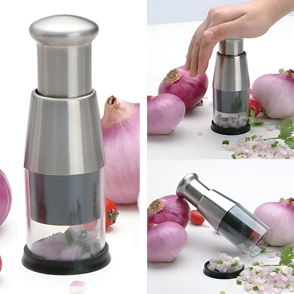 Jednoduchým pohybem stisknutím nasekejte zeleninu, ovoce, bylinky, cibuli, česnek, a dokonce i ořechy. Tento ruční sekáček je ideální pro přípravu jídla a nevyžaduje žádné dovednosti s nožem. Bezpečné použití udržuje vaše ruce mimo dosah nožů, čímž minimalizuje riziko pořezání.