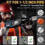 PIPEDRILL je navržen tak, aby opravy a instalace vodovodních rozvodů byly rychlejší a jednodušší. Vyhrubovací vrtáky rychle vyhlazují okraje trubek, což umožňuje montáž tvarovek během zlomku času.