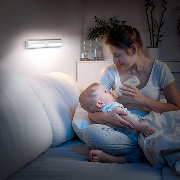 Nalepte ji poblíž dveří do koupelny nebo dovnitř. Aktivuje se, jakmile se přiblížíte, a poskytne dostatek světla pro noční návštěvy bez ostrého jasu stropních světel.