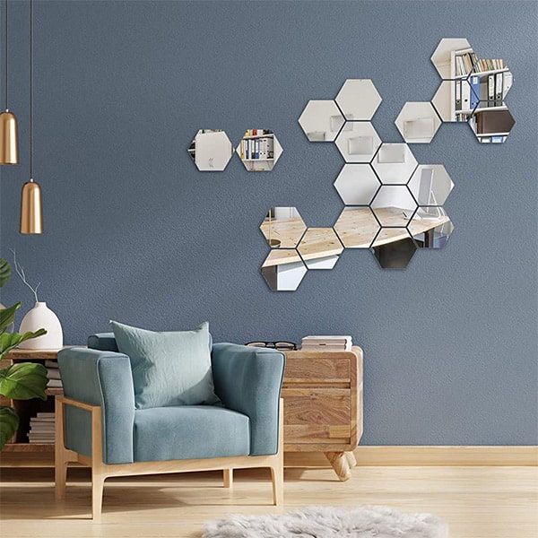 Samolepicí šestiúhelníkové zrcadlové samolepky jsou dekorativním doplňkem, který okamžitě zlepší vzhled vašeho domova. Jedná se o cenově dostupný a elegantní způsob výzdoby stěn.