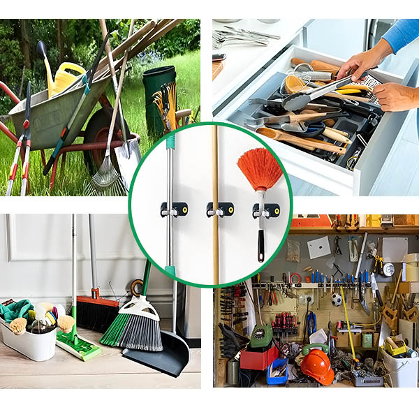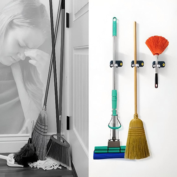 Tyto držáky jsou ideální nejen na košťata a mopy, ale také na zahradní nářadí, deštníky nebo dokonce do garáže, abyste měli ve svém vybavení pořádek. Ať už u vchodu do domu, v koupelně, kuchyni nebo venku na zahradě, tyto držáky najdou své místo v každé části vašeho domova.